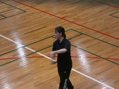大健闘の末、惜しくも敗北しました。ずっとバドミントンを続けてきた3年生ですので、練習のときから後輩の面倒もよく見てくれていた生徒です。こちらも後輩の良いお手本となる戦いぶりでした。ベスト16です。