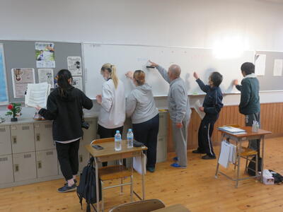 教室(机・椅子)下足箱移動・大掃除・生徒交流会~バレーボール~