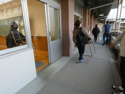 まずは、新教室への荷物移動からです。自分の机、椅子、荷物等を次年度の教室に運びます。