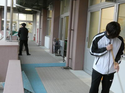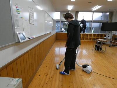 少ない人数ですが、手分けして各教室・廊下及び多目的室・カウンセリング室並びに昇降口・トイレに至るまで、時間をかけて掃除します。