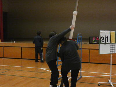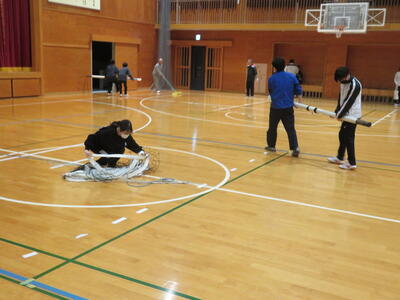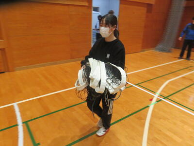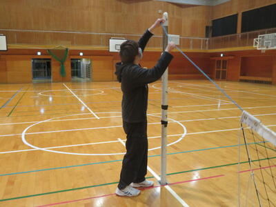 今回は、バレーボールです。協力して準備をします。