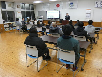 まずはこの1年間、本校定時制のために活躍してくれた旧三役による退任のあいさつからです。この旧三役は全員が今春卒業予定の生徒ばかりです。これまで学校のために本当にありがとうございました。この生徒会経験が、今後の人生に大きく役立つことと思います。