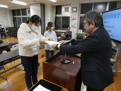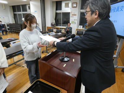 校長先生より委嘱状が手渡されます。