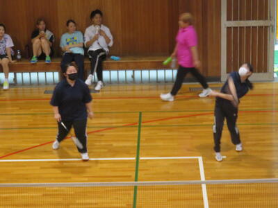 女子ダブルスは2組が出場し、1組目は10-21、2組目は8-21と、相手チームが強敵でしたがよく善戦し、いずれも1年生チームでしたが、敗れたものの、とても実り多きデビュー戦となりました。