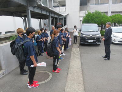 校長からは、「結果は様々ではあったが、この経験を生かして、これからの進路活動等に励んでほしい。」という激励のことばをいただきました。最後に、集合写真を撮って帰校します。