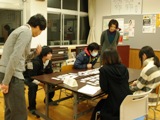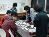 2学期の最後に大掃除を行い、その後、百人一首で生徒同士の交流を行いました。2人1チームになり、2ブロックで総当たり戦をしたあと順位決定戦を行いました。歌を覚えている人、いない人さまざまで取ったりとられたり、和気藹々と楽しんでいました。