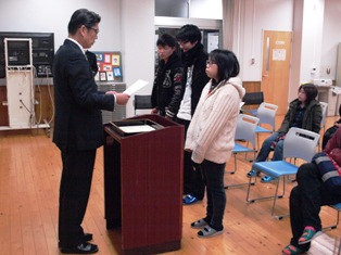 2017年になり、3学期の始業式を行いました。校長先生の式辞の中で、SGHの指定校にちなみ英語での新年の挨拶の話がありました。続いて、新成人の祝いでは2名の生徒が新成人としてしっかりとした抱負を語ってくれました。