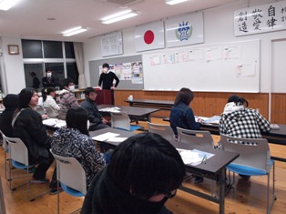 1月27日(金)、人権教育終了後、スイーツ・食事・観光・歴史の4班に分かれ、活動を行いました。観光班では、イベントカレンダーを作成するため、それぞれの地域の観光地を出してもらいました。地元ならではの意見もたくさん出ました。