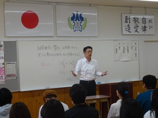 9月1日(金)に2学期の表彰式・始業式を行いました。終業式では、校長先生より『2学期に就職・進学試験に挑む生徒がおり、企業側はどのような人材を求めているのか』という話をされました。経営理念に賛同し、その実現に向けて周りを巻き込みながら自ら行動できる人を求めており、それは普段の授業の中でも学ぶことができると、数学の授業に例えてお話いただきました。