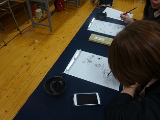10月11日(木)の3・4時間目に創作活動(絵手紙の制作)を行いました。今年度も本校の卒業生で墨人・書家として活躍されている新立航大氏を講師としてお迎えしました。講師の先生の「自分が思うように、楽しんで書いてください。」という言葉を受けて、それぞれ作品づくりに取り組みました。アドバイスを受けつつ、試行錯誤しながら多くの個性的で素晴らしい作品が仕上がりました。また、今回作成した作品は11月9日(金)の定時制文化祭で展示しますので是非ご覧ください。
