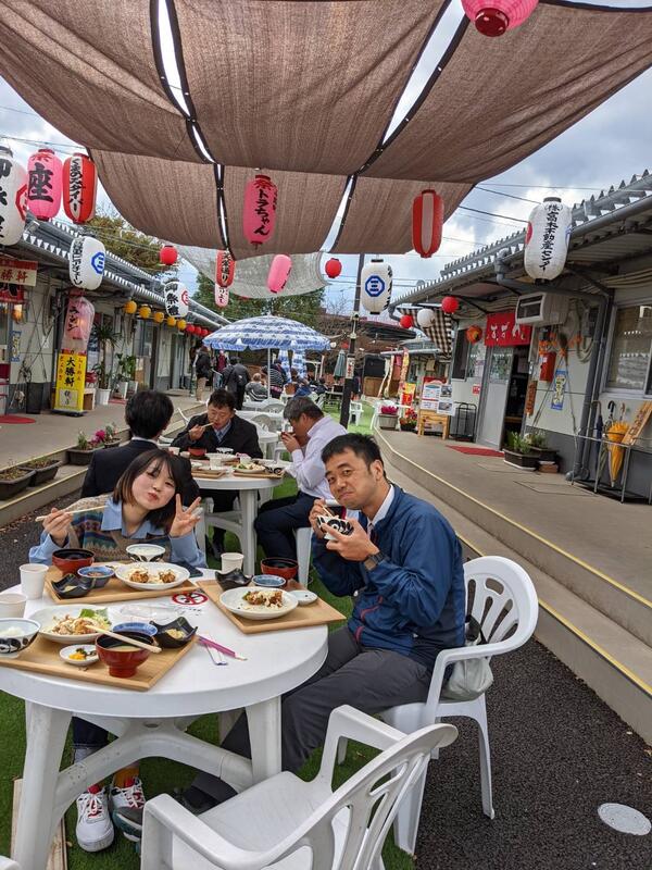 モゾカタウンとは、昨年7月におきた人吉・球磨豪雨災害の復興を目的として作られた仮設の駅前商店街です。復興を目的としていることから2年後には解体されるとのことでしたので、今しか訪れることができない場所になります。生徒たちはそれぞれが食べたいお店に入って、限られた時間をとても楽しんでいました。
