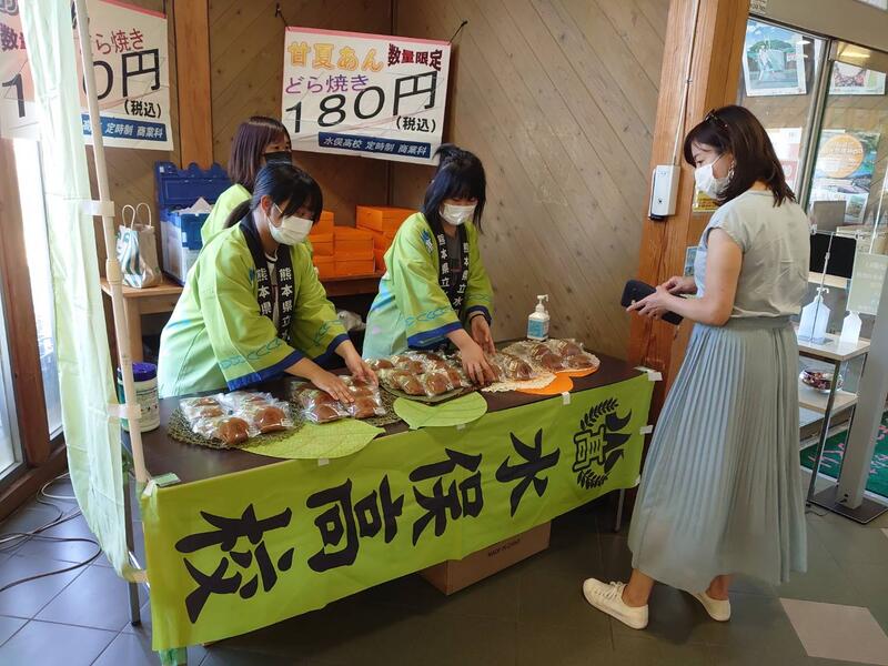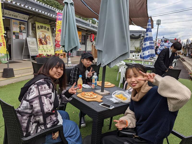 モゾカタウンとは、昨年7月におきた人吉・球磨豪雨災害の復興を目的として作られた仮設の駅前商店街です。復興を目的としていることから2年後には解体されるとのことでしたので、今しか訪れることができない場所になります。生徒たちはそれぞれが食べたいお店に入って、限られた時間をとても楽しんでいました。