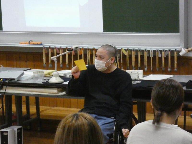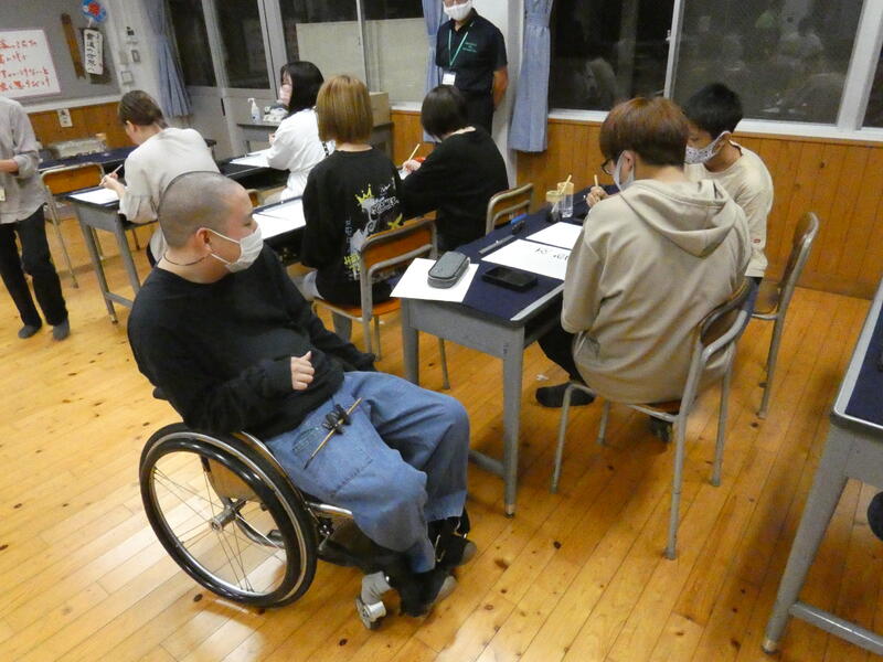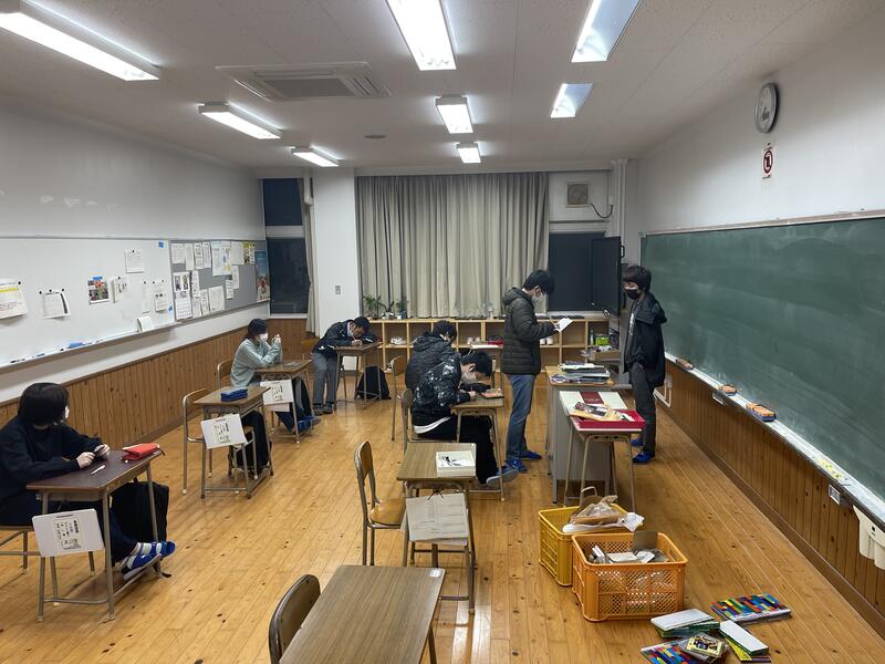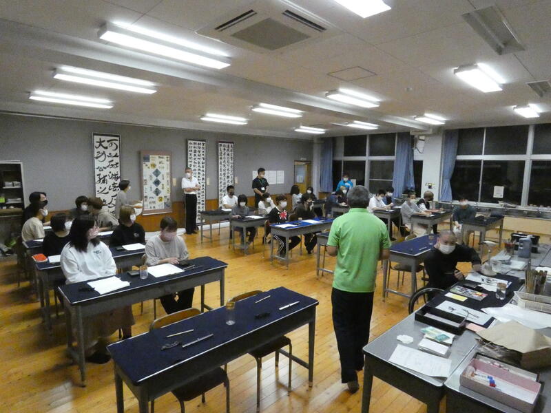 生徒たちは、最初はどのようにすればいいかわからず筆が止まっていましたが、新立さんに指導してもらっていくうちにとても楽しそうに作業していました。