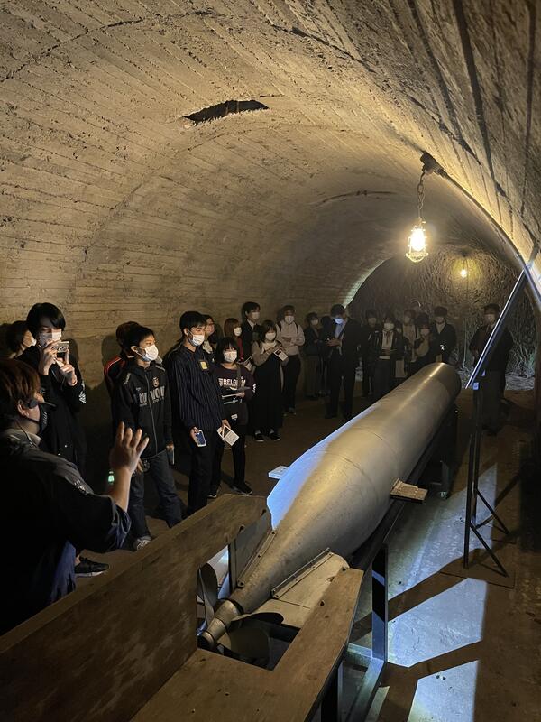 秘密基地ミュージアムは、人吉海軍航空基地跡に作られた施設です。今回は、周辺に無数にある地下壕のうちの一つである「魚雷調整場」を見学した後に、人吉海軍航空基地資料館を見学しました。