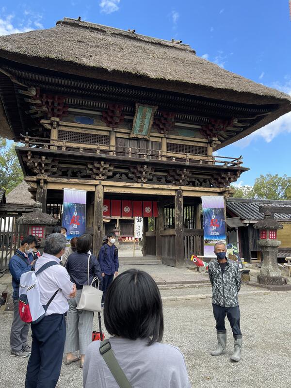 昼食を取り終えてからは、人吉駅から青井阿蘇神社まで徒歩で移動し、現在も残る災害の爪痕と復興について、実際に歩きながら説明をしていただきました。