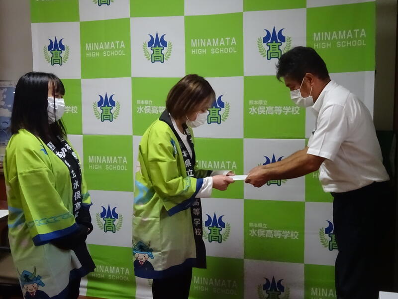 今回の販売実習に際しまして、この度、水俣高校同窓会より助成金をいただきました。