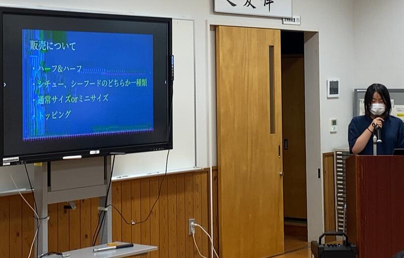 プレゼン内容は、各班でオリジナルのメニューを考案し、道の駅みなまたでの販売を想定した価格設定や製造・販売方法なども考えるというものでした。