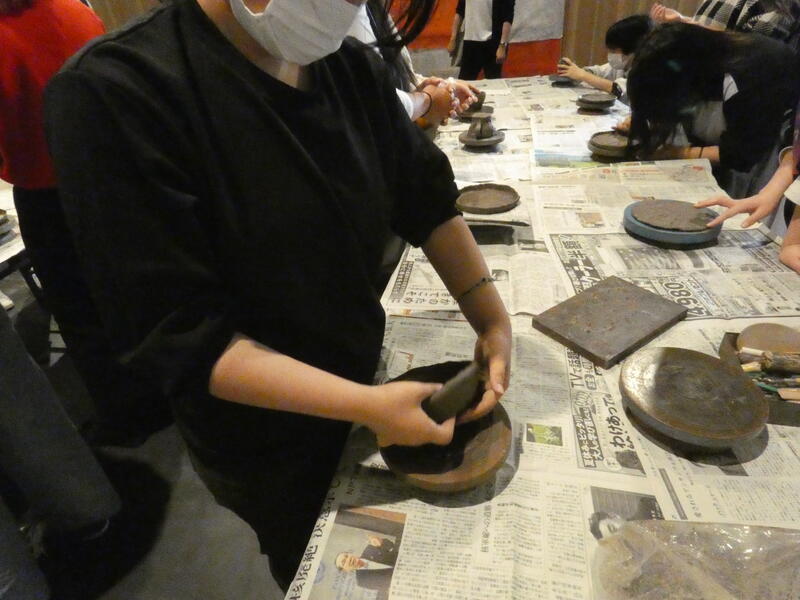 生徒たちの多くは初めての陶芸で、作り方の説明をとても真剣に聞いていました。
