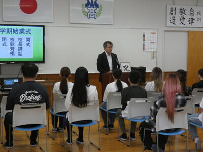 講話後は校歌斉唱、その後各部主任主事より連絡がありました。