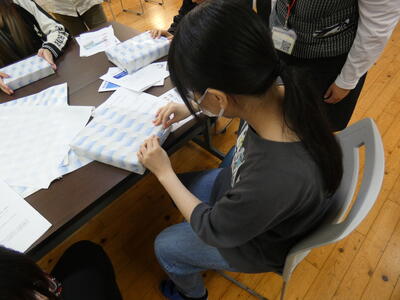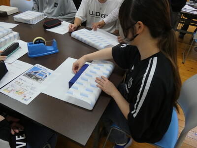 去る7月8日(火)に、この企画の検討会が本校多目的室で実施されましたが、そこで生徒から提案されたプレゼンや、それと関連して生徒から出た意見及びプロからのアドバイス、さらにはプロの助言を受けながら行った調べ学習の内容を、総括的なイメージとして作り上げた仮の商品を試作してみるというものです。