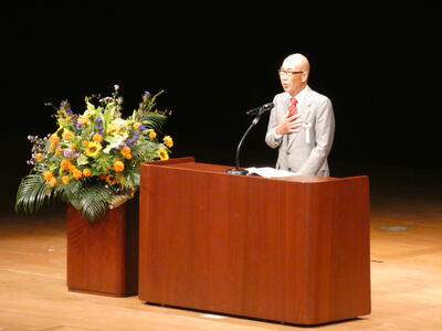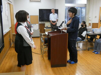 裏方として本部会場係の仕事をこなしてくれた本校代表の生徒2名を含む生徒スタッフの紹介もあり、会場の皆様からは、ねぎらいの拍手が送られました。