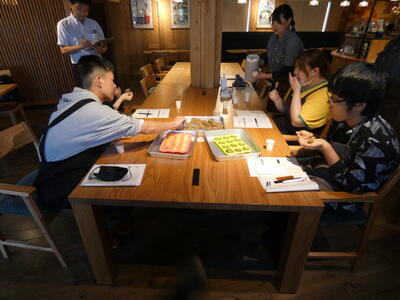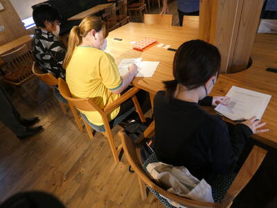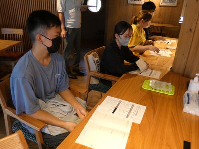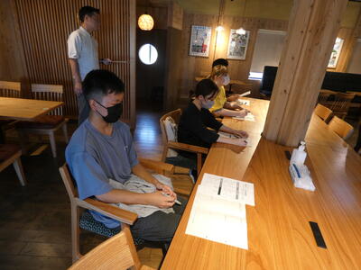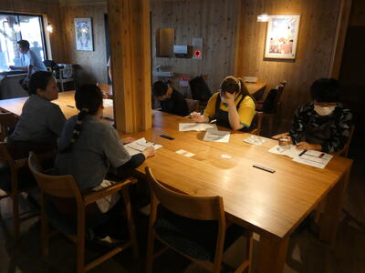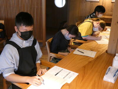 シェフの方々からの助言も受けつつ、ペーパーに記入していきます。