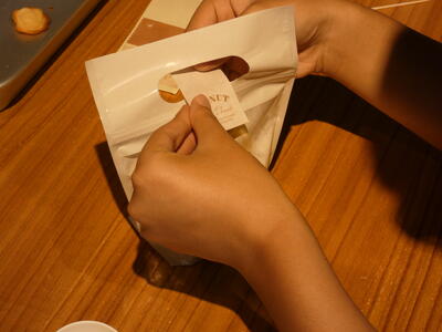 抹茶・不知火・和紅茶の各味を2個ずつ、計6個入りになるように袋詰めをします。