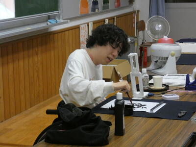 昨年の作品を参考に、出来ることから始めます。幻想的な作品を作っている様子です。