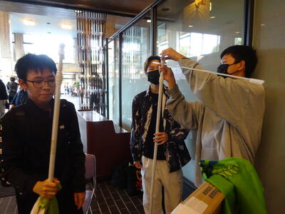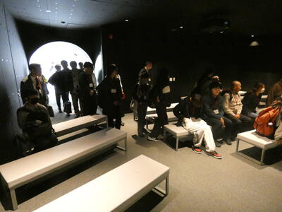視聴覚スペースへ移動し、熊本地震に関する動画を視聴しました。震災当時の映像や様々な立場の人たちへのインタビュー映像が放映されました。みなさん、辛い記憶を抱えつつも、前を向いて生きていらっしゃる姿が印象的でした。
