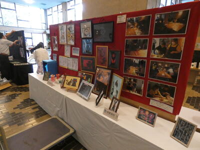 ボードへの掲示も終わり、テーブルに立てかけるタイプの作品を並べていきます。