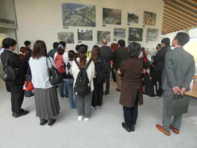 その後、ホールへ移動し、震災当時の空撮写真を中心に、被害の状況について説明がありました。