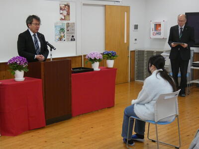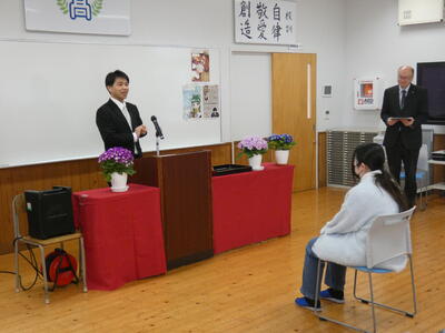 生徒本人からも、感謝の気持ち等が語られました。担任の先生からも、1年時から取り組んできた勤労学生としての苦学してきた高校生活を振り返りながら、労いの言葉がかけられました。