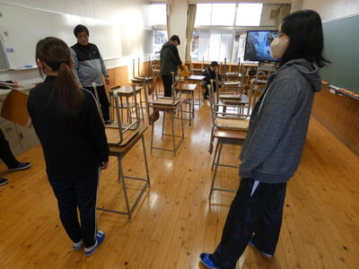 〇教室(机・椅子)下足箱移動