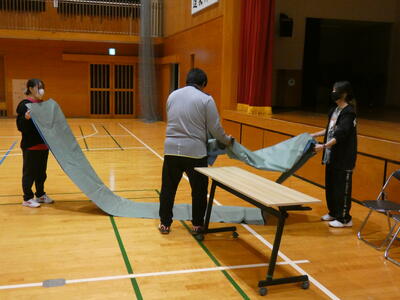 大掃除・教室(机・椅子)下足箱移動・生徒交流会~バドミントン大会~