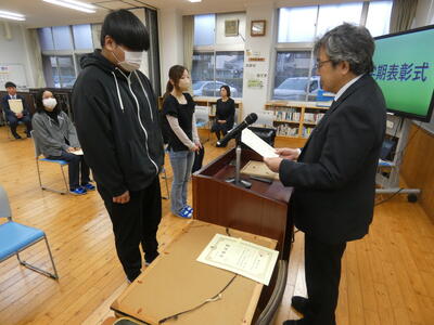 入賞者、合計4名に対して、教頭先生より表彰状をいただきました。