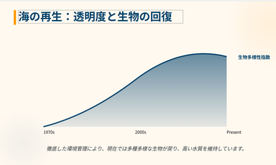 2班は海の再生を成し遂げたことによる豊かな水産資源や農産物について紹介しました。