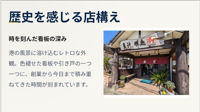 そして、それらの特産品を活かした美味しい定食が地元の人々に愛されているランドマーク的な名店をPRしました。