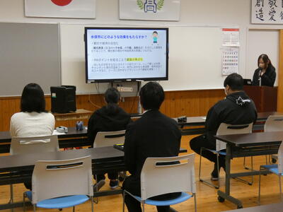 旧2班は、「水俣の環境について」と題して、3名の生徒が発表しました。