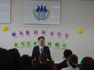 保護者のみなさまにおかれましても、お子さんの御入学、誠におめでとうございます。この高校生活の期間は、在り方生き方を探っていく大切な時期です。予測困難な時代ではありますが、教職員一同、全力で支援してまいります。時には厳しく、時には優しく指導してまいりますので、学校の方針をご理解いただき、家庭との連携を密にしながら生徒の育成にあたっていければと思います。