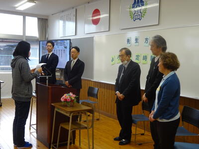 校長先生から、転出される先生方お一人おひとりのご紹介がありました。