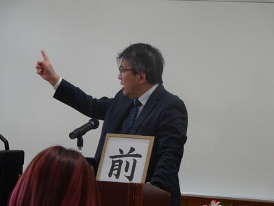 昨年度までに「リニューアル」を成し遂げた水高が、その基盤の上に立ち、次の段階を目指してさらに一歩前に進むことを意味しています。それを表す一字として「前」という漢字を示してくださいました。