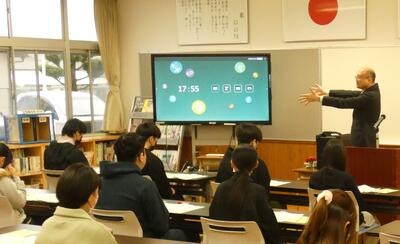 4月から新天地でお勤めになる先生は、旧水俣高校の時代から、長年にわたって定時制のためにご尽力いただきました。商業科の要となる商品開発や販売実習を通して、生徒たちと深く関わってくださいました。「遅咲きの桜ほど、栄養をたくさん蓄えて咲くから、その花はより美しい」と、定時制の生徒たちへのはなむけの言葉をいただきました。