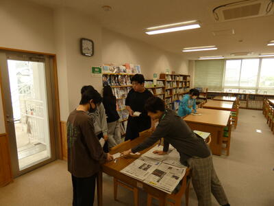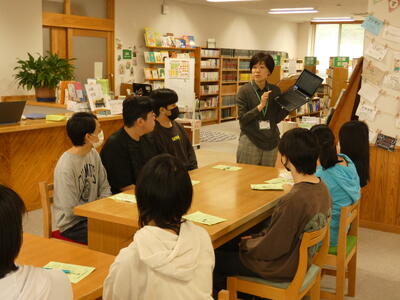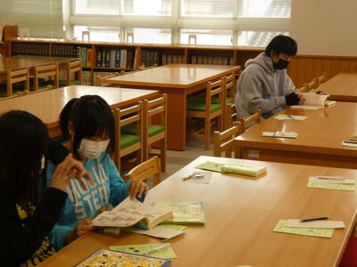 司書の先生から図書館の利用方法について丁寧なレクチャーを受け、その後は昔話をテーマにしたウォークラリー形式で図書館内を散策しました。ウォークラリー終了後は、さっそく図書の貸出手続きをしました。機会を見て積極的に利用してほしいですね。