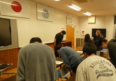 訓練終了後に多目的室に集まり、震災で犠牲になった方々へ向けて、定時制全員で黙祷を捧げました。