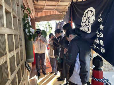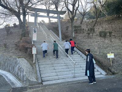 部活始めということで、まずはおかどめ幸福神社まで走り、初詣を行いました。