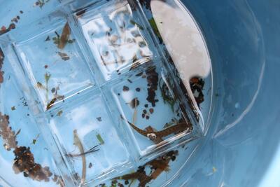 芭蕉園(バナナの栽培をしています)付近で水生生物の捕獲作業を行いました。