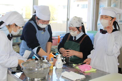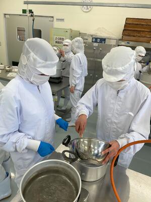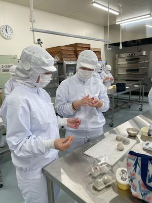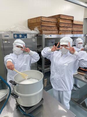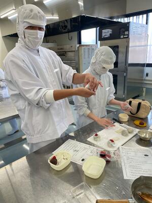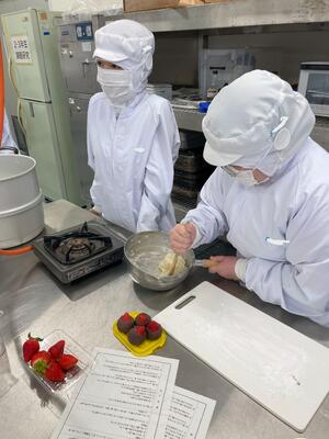 食品科学科1年生の本日の食品製造実習では大福 の製造を行いしました(^^)/