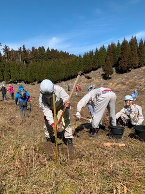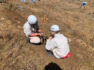 300本のクヌギ苗を無事、植えることができました。今後も、南稜高校は、クヌギ苗を育て植樹して防災減災に強い山づくりをしていきます。
