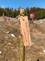 当日は、地元である球磨村の小中学生は参加できませんでしたが、クヌギ苗への思いをプレートに書いてくれました。
