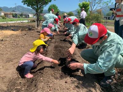 山江村で「鎮山親水」植樹祭が行われ、環境コースが参加しました。山江村や八代市の小学生と共に午前中は、村有林に行き、クヌギとセンダンを植樹しました。